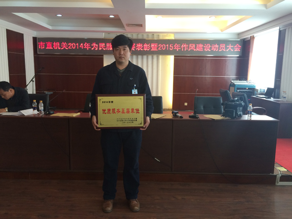 2015年4月16日,在我市召開的2014年度市直機關窗口單位服務行業(yè)“為民服務創(chuàng)先爭優(yōu)”競賽活動總結表彰大會上,公司熱線指揮中心被評為“優(yōu)質服務基層單位”,成為全市18家獲此榮譽的基層單位之一。
