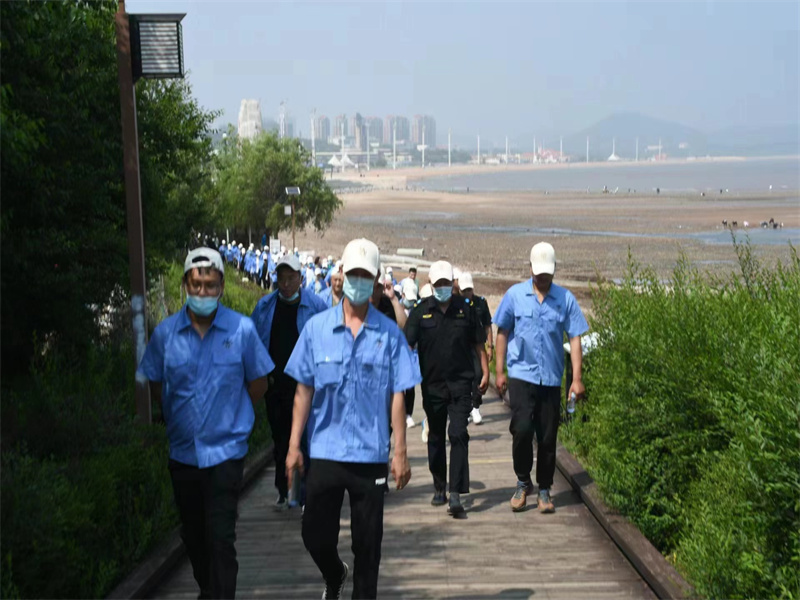 活動中,職工邁步行走在風景怡人的海邊棧道上,呼吸著清新的空氣,欣賞著周邊的美景,感受著大自然的生機和活力,每個人臉上都洋溢著燦爛的笑容。