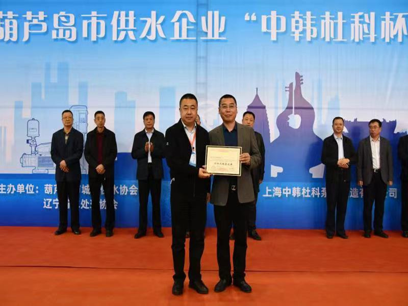 葫蘆島市城鎮(zhèn)供水協(xié)會李文生會長在閉幕會上向上海中韓杜科泵業(yè)制造有限公司對本次活動的鼎力相助、渤海船舶職業(yè)學院對本次活動提供場地和人員支持、以及各縣區(qū)水司同行及全體員工對本次活動的熱情支持表示感謝;向獲獎選手表示祝賀,向市總工會、市國資委及省水處理協(xié)會的支持表示感謝。他指出,本次活動獲獎職工的成績,將在晉職晉級、提拔任用等方面作為有效的重要的依據(jù),激勵大家愛崗敬業(yè),勤學勤練,苦練本領(lǐng),為城市供水事業(yè)多做貢獻。