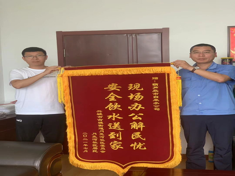 7月28日,興城市古城街道月亮河社區(qū)委員會和社區(qū)居民代表來到葫蘆島市自來水公司,送來一面“現(xiàn)場辦公解民憂?安全飲水送到家”的錦旗,衷心感謝自來水公司領導,上門服務現(xiàn)場辦公,積極協(xié)調(diào)解決了小區(qū)水壓問題,改善了小區(qū)居民的居住質量。