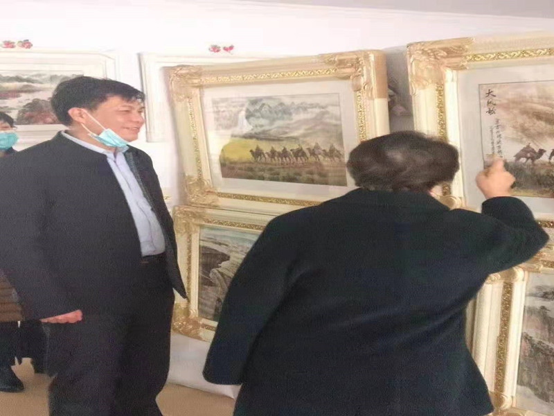 參觀中公司黨委張書記與作家張鳳蘭老師就一些作品進(jìn)行了親切交流,并問候老人家近況,當(dāng)?shù)弥獢[放展品的家里存在用水難題時(shí),現(xiàn)場辦公聯(lián)系了公司營業(yè)分公司幫助解決自來水問題,保證展覽地點(diǎn)的用水,老人家表示非常感激。