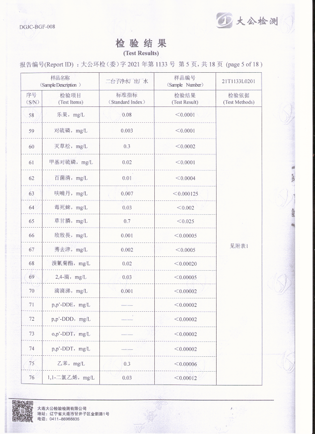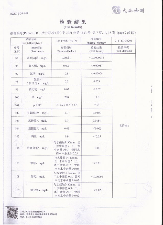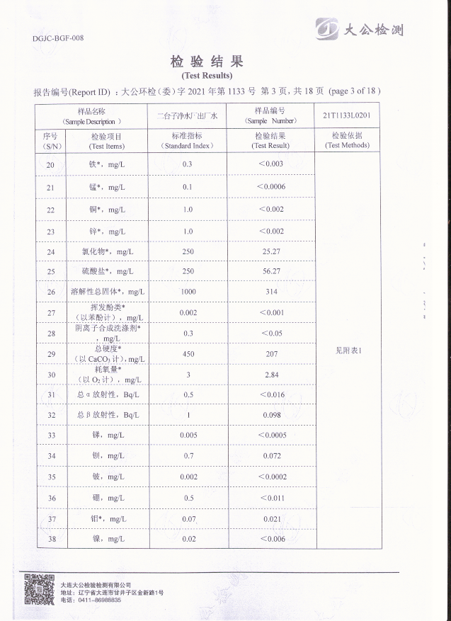 二臺(tái)子凈水廠出廠水檢驗(yàn)報(bào)告