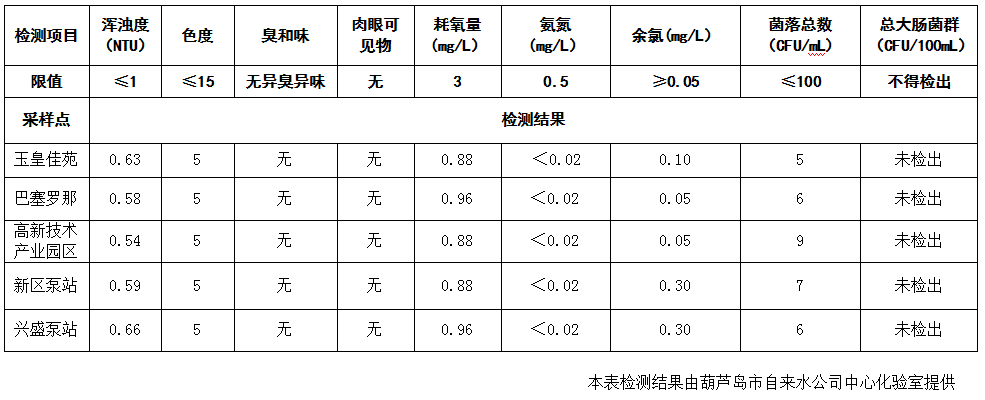 2017年11月8日葫蘆島市城市供水管網(wǎng)水質(zhì)信息