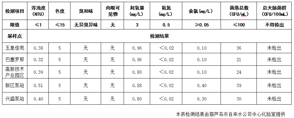 2017年4月12日葫蘆島市城市供水管網(wǎng)水質(zhì)信息