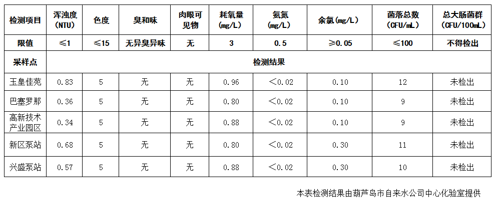 2017年3月15日葫蘆島市城市供水管網(wǎng)水質(zhì)信息