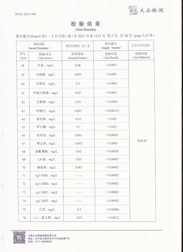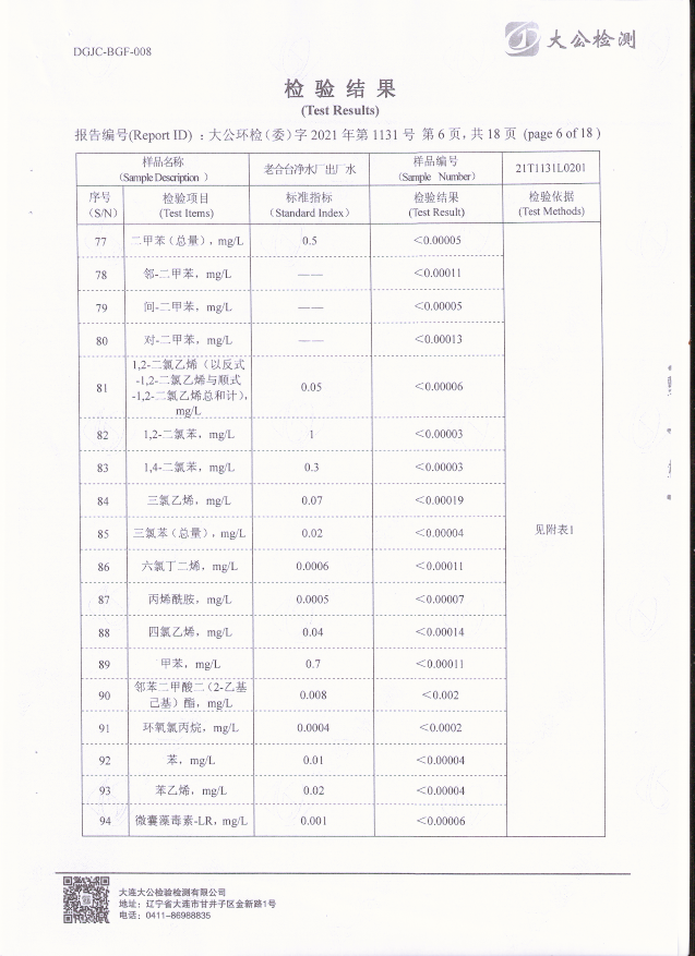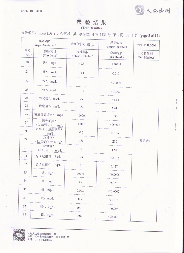 老合臺凈水廠出廠水質(zhì)檢驗(yàn)報(bào)告
