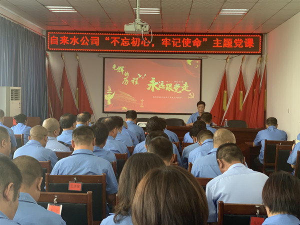 8月1日下午,市自來水公司黨委書記張旭濱以“不忘初心,牢記使命”為主題,為公司黨員干部上了一堂生動黨課,公司基層正職上干部、各黨支部委員、小組長及機(jī)關(guān)黨員80余人參加了學(xué)習(xí)。