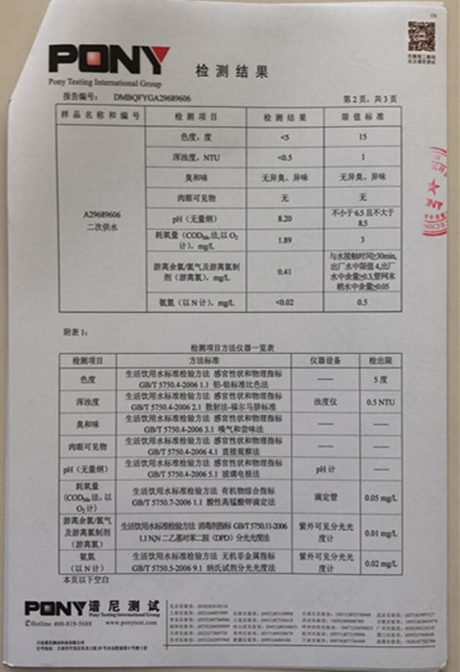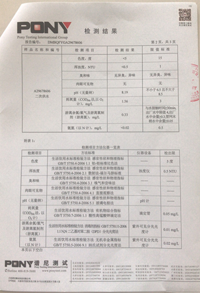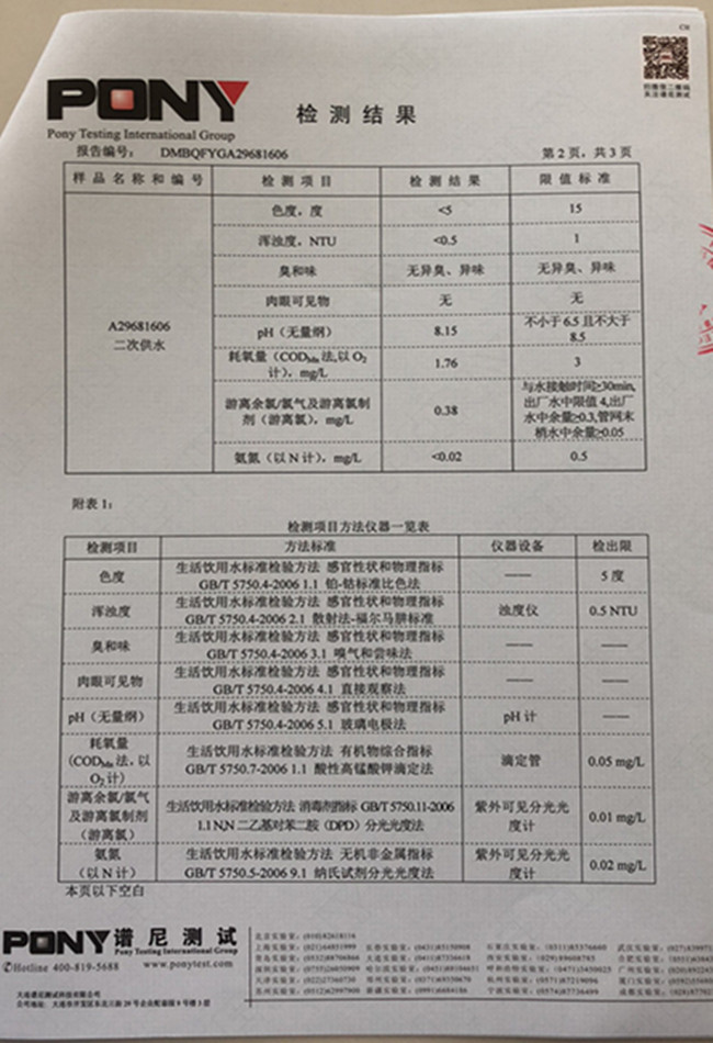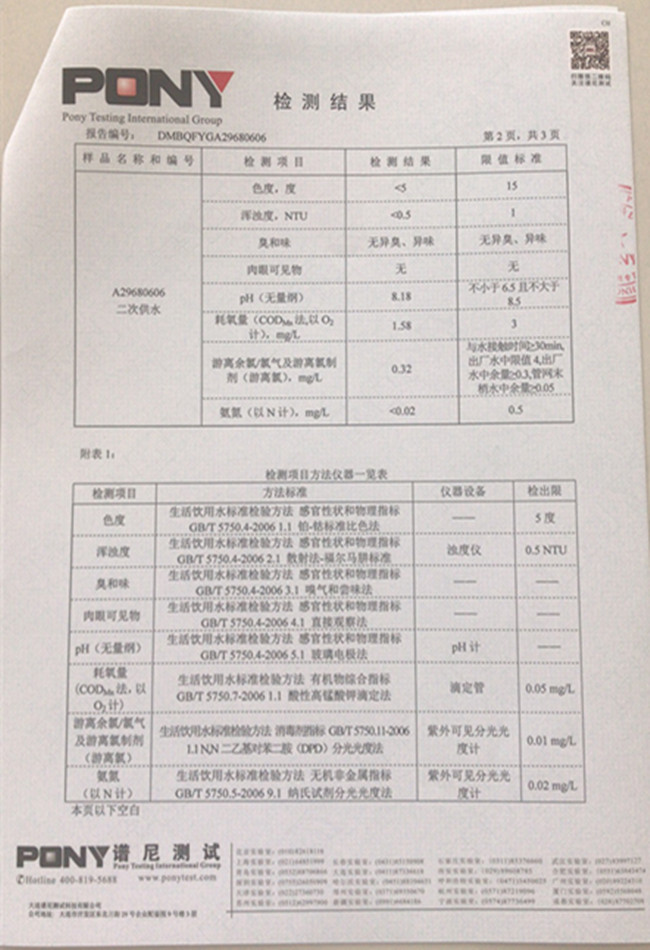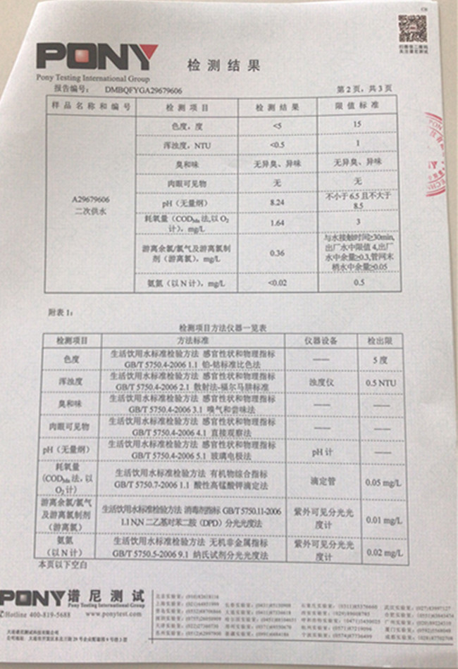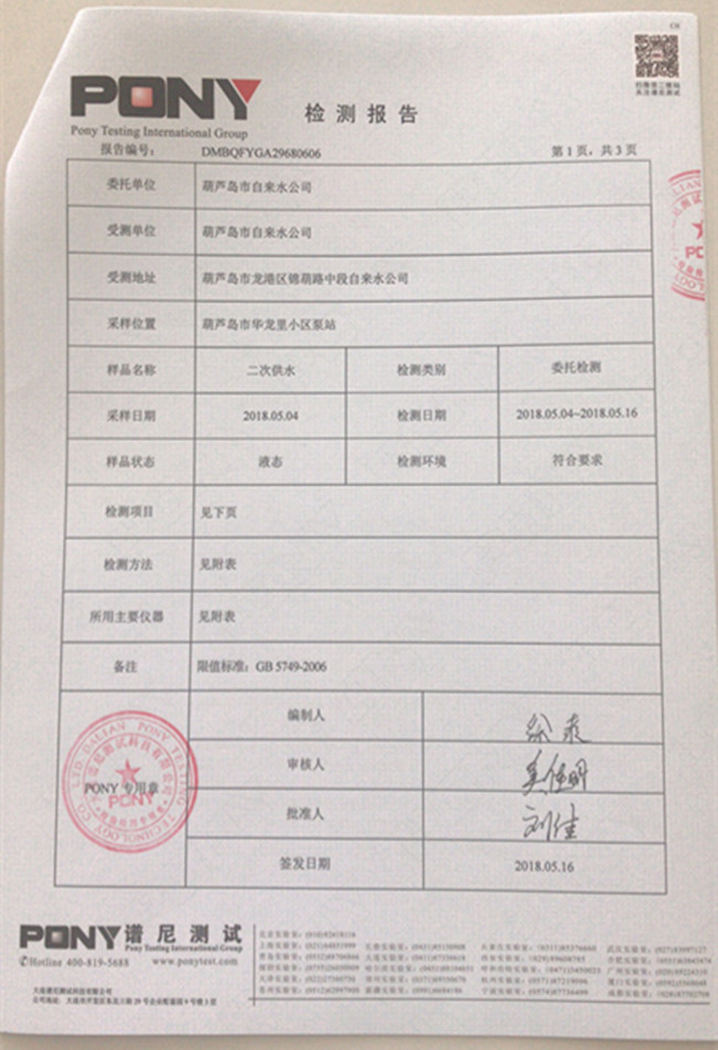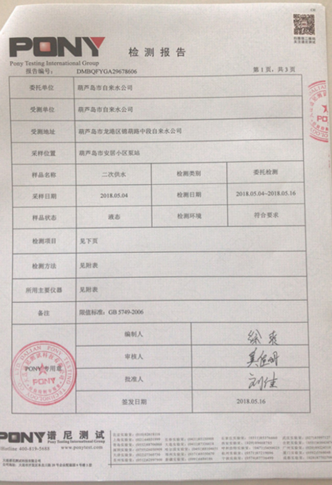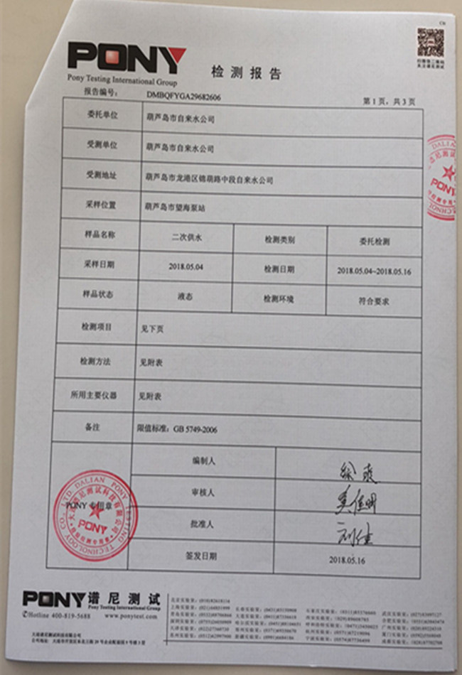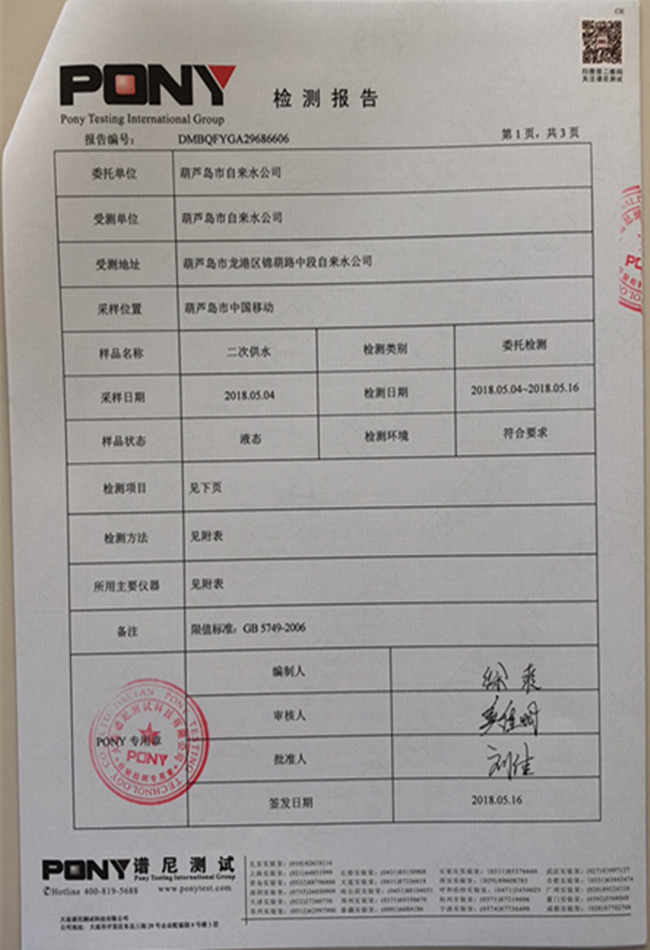 城鎮(zhèn)供水規(guī)范化管理水質(zhì)抽檢報告(報告日期:2018.05.16)