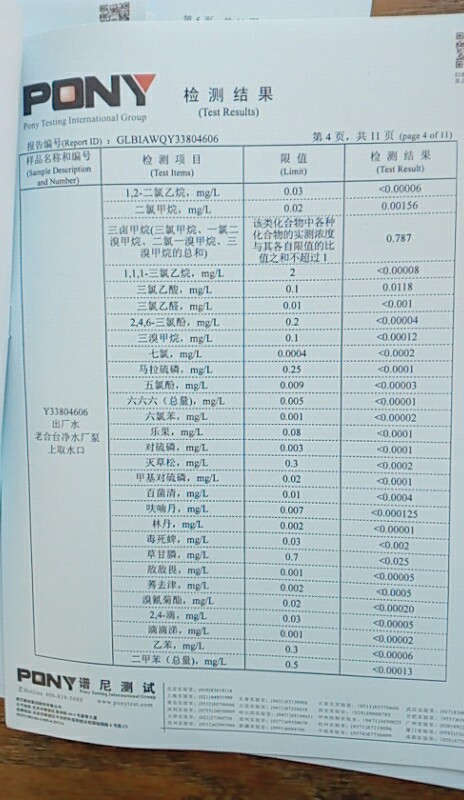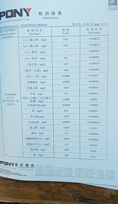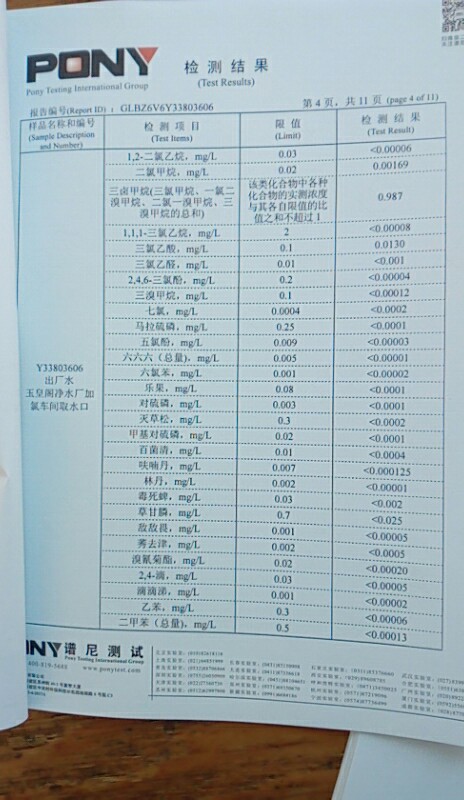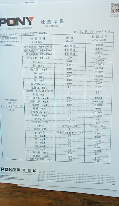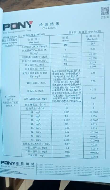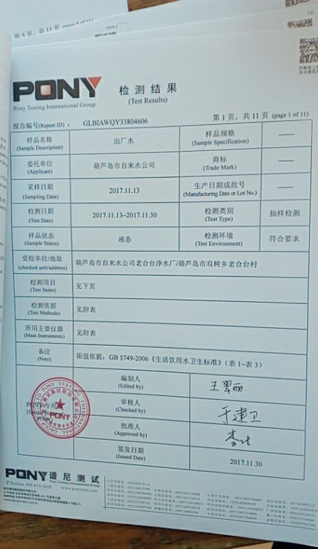 2017年11月葫蘆島市自來水公司出廠水質(zhì)信息