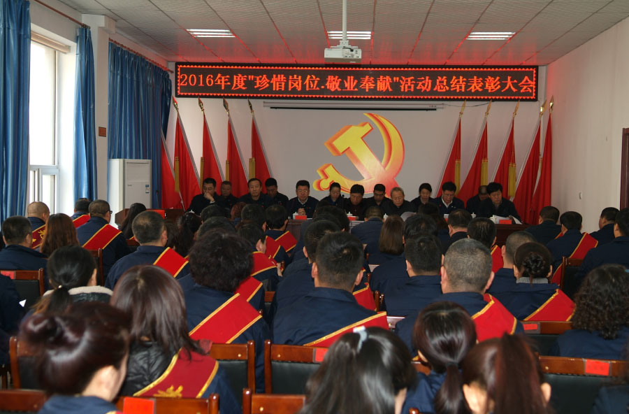 2月15日上午9時(shí),自來(lái)水公司2016年度“珍惜崗位、敬業(yè)奉獻(xiàn)”活動(dòng)總結(jié)表彰大會(huì)在高唱《國(guó)歌》聲中隆重開幕。先進(jìn)單位、先進(jìn)集體、先進(jìn)班組代表和39名先進(jìn)個(gè)人以及公司基層副職以上干部參加了會(huì)議。住建委黨委委員、副主任張庭政,政治部主任張澤起到會(huì)祝賀并講話。會(huì)議由公司黨委書記張旭濱主持。